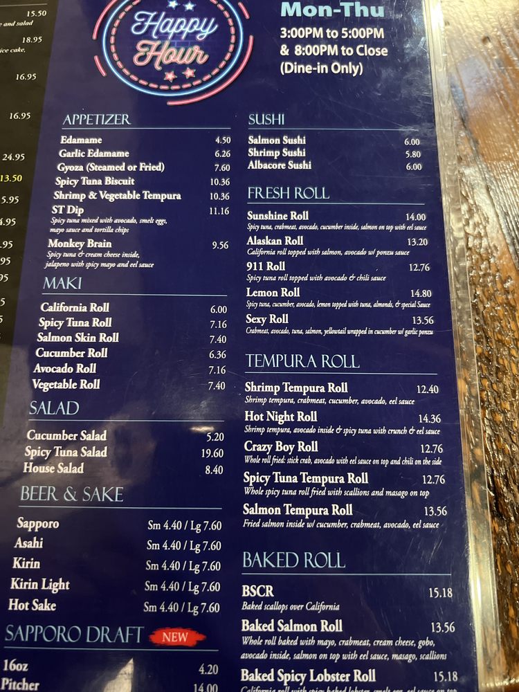 Spicy. Spicy tuna, crabmeat, jalapeño, all deep fried with eel sauce and mustard sauce.